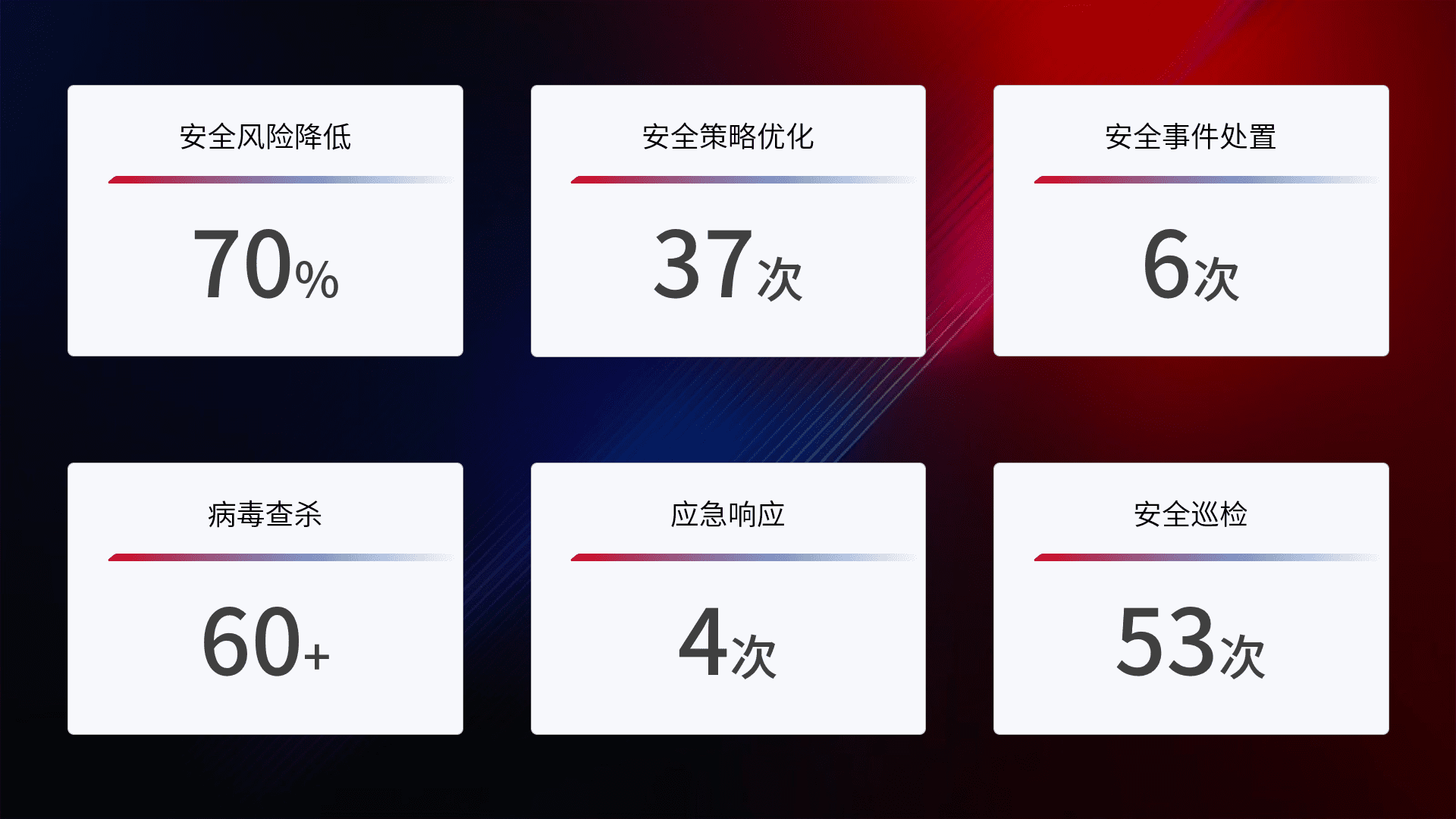 提供全面的安全事件报告体系,,包括处置报告、、周报、、、季度和年度总结,,结合持续监控,,,帮助客户深入了解网络安全状况。。。。